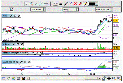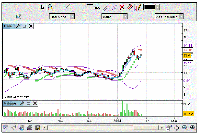 Drawing assistance can be selected help you in drawing supports and resistances : each time you place the mouse cursor near a specific quote price (extremum, close, open) or near an indicator specific value (bollinger, oscillator..), the first value used to draw the line will be this specific value and the drawing assistance will help you in selecting the second point needed to draw the line.