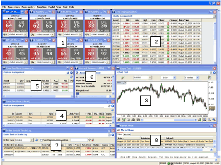 1. WYCIWYG Trading Boxes: one box for each currency pair. View real time bid/ask rates. Click on the BUY or SELL to execute a trade.
