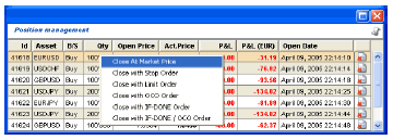 One of the specificity of the Amerex Java Trading Platform is the possibility to manage many open positions in the same currency pair.
