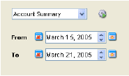 Both reports "Account Summary" and "Transaction Summary" can be generated by selecting a period of activity. By default the current month is selected.