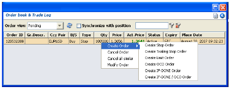 By right-clicking on "Modify Order", the appropriate order-editor is displayed and all parameters can be modified.